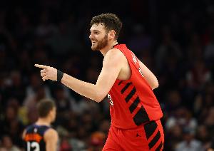 上半场比赛,开拓者中锋克林根发挥出色,进攻端里突外投很高效,尤其制霸内线,他出战14分钟,12中7,三分3中2,罚球6中5砍下21分8篮板(5前场篮板)1助攻2盖帽,正负值+11。