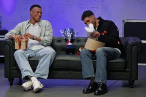体育资讯04月03日讯 姆巴佩、琼阿梅尼和阿什拉夫近期参与了访谈节目《桥》,节目开场阶段,在嘉宾获赠礼物环节,阿什拉夫收到了一座奖杯和一条毛巾,而这自然是指此前非洲杯决赛中摩洛哥与塞内加尔之间的“毛巾大战”,以及非洲杯冠军改判事件。