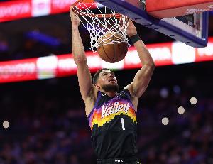 下半场他拿到第35分后,布克的生涯总得分更进一步,超越了湖人名宿“魔术师”埃尔文·约翰逊,排名升至历史第89位。