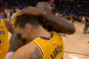GIF-比赛结束后老詹第一时间拥抱77